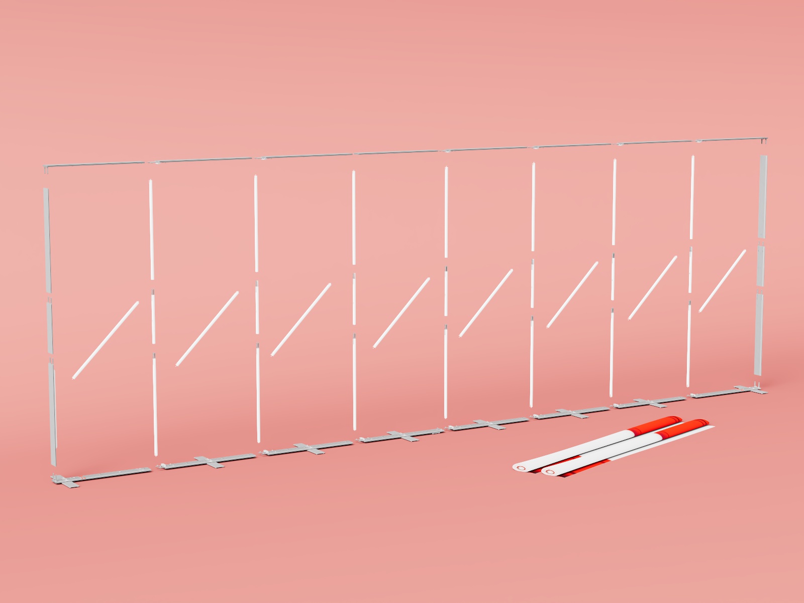 Nehmen Sie einfach die einzelnen Komponenten aus dem praktischen ABS-Koffer, montieren Sie sie (ohne Werkzeuge), schrauben Sie die Füße fest – und schon ist das Display einsatzbereit! Digitaldrucke mit angenähten Silikonlippen lassen sich leicht am System anbringen, sind benutzerfreundlich im Handling und können jederzeit selbstständig ausgetauscht werden.
