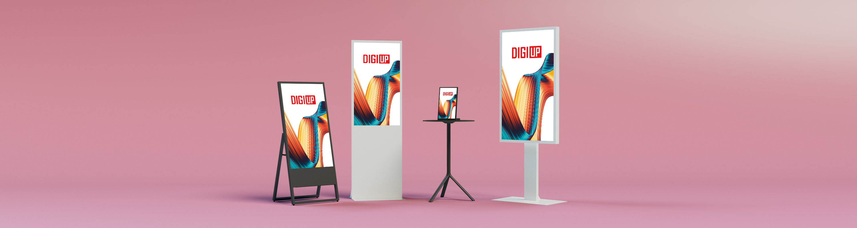 Der DIGIUP Desk kann vielseitig eingesetzt werden, beispielsweise zur Werbung an Schaufenstern, um potenzielle Kunden direkt anzusprechen und Produktneuheiten zu präsentieren. Er eignet sich hervorragend als digitales Menü in Restaurants, um täglich wechselnde Speisen oder Sonderangebote darzustellen. Auf Messen und Events kann der DIGIUP Desk genutzt werden, um Informationen über Produkte, Dienstleistungen oder das Unternehmen ansprechend zu vermitteln. In Empfangsbereichen von Hotels oder Büros dient er zur Begrüßung und Information von Kunden oder Gästen. Auch im Einzelhandel findet der DIGIUP Desk Anwendung, indem er spezielle Angebote oder neue Produkte hervorhebt und somit den Umsatz steigert. Dank der einfachen Aktualisierung des Contents über WLAN, LAN oder ein optionales 4G-Modul ist der DIGIUP Desk flexibel und sofort einsatzbereit.