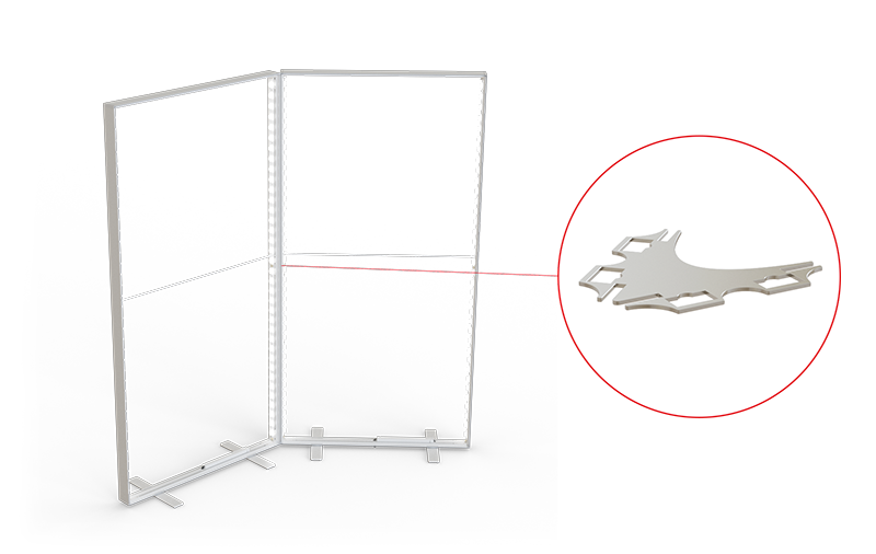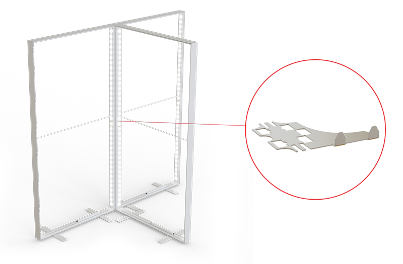 Mit dem 90-Grad-Systemverbinder kann eine stabile Ecklösung geschaffen werden, die das rechte System abdeckt.