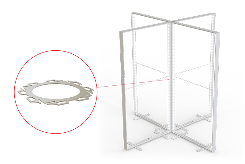 Mit dem Kreuz-Systemverbinder können 4 LEDUP®s zu einer Kreuz- Form verbunden werden. Diese Variante ermöglicht eine große Werbefläche auf kleinem Raum.