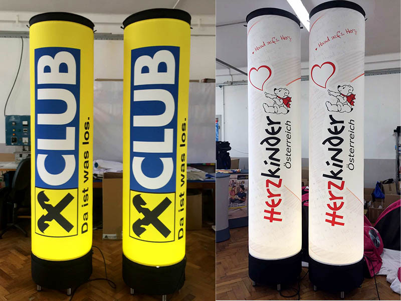 Die Werbesäulen bestehen aus robustem, aber dennoch leichtem Material, das es ermöglicht, sie problemlos aufzublasen und zu transportieren.