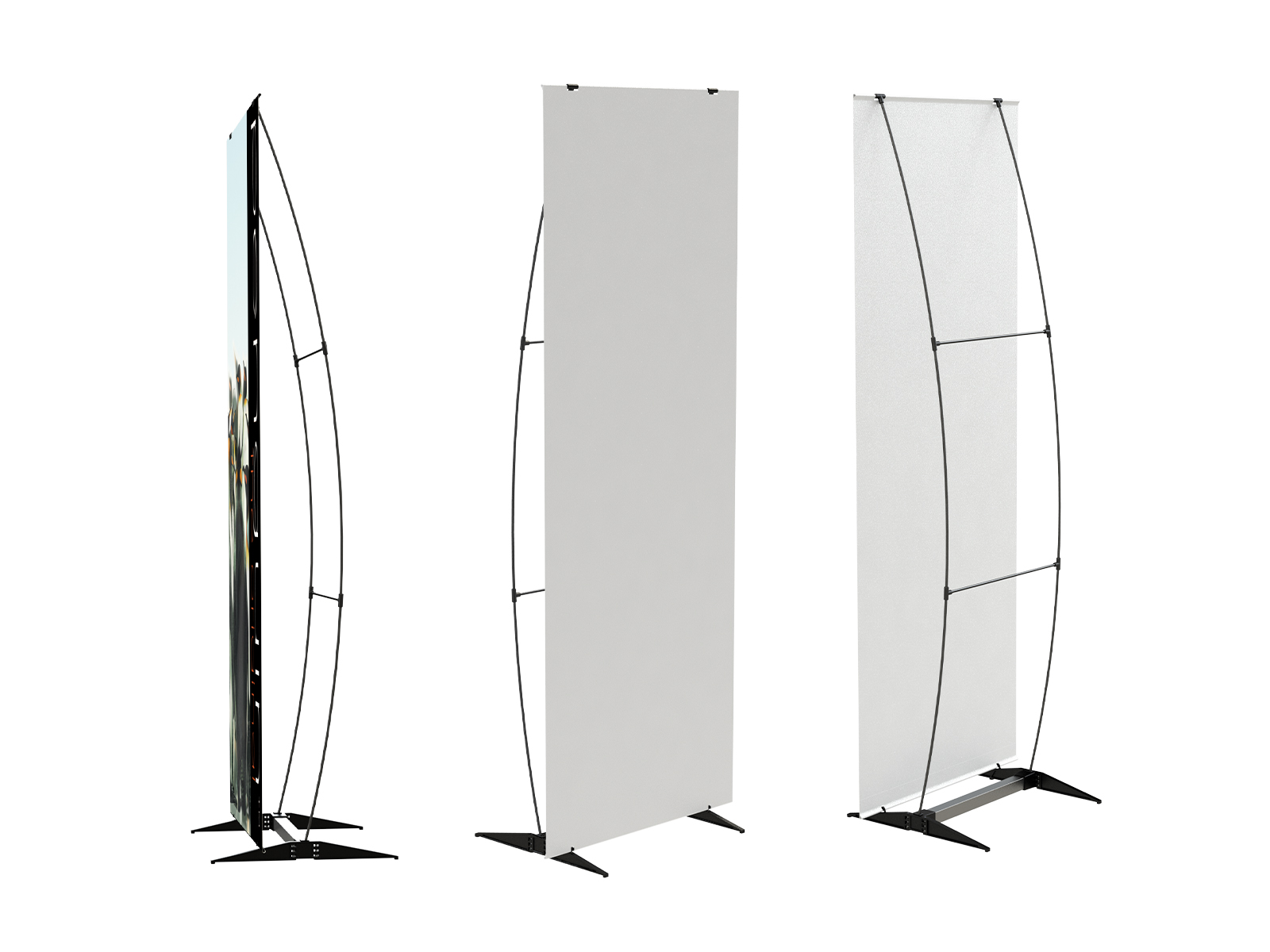Die flexible Rückenkonstruktion gibt bei Wind nach, sodass auch herkömmliche Outdoor-Stoffe ohne Mesh verwendet werden können. Dadurch entsteht ein hochwertiges Grafikbild und ein ansprechendes Outdoor-Display.